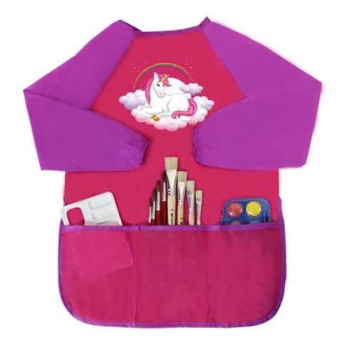 Gyerekeknek remek választás ez a praktikus, vízálló kötény, mely munka közben megvédi a ruhájukat a nemkívánatos szennyeződésektől. A kötény anyaga strapabíró és vízlepergető. Tépőzárral könnyedén rögzíthető a gyerekeken és egyszerűen levehető. Az ujjakat gumiszalag fogja össze a gyerekek csuklóján. A hosszú ujjaknak és az elülső zsebeknek köszönhetően praktikus és még festőkellékek is tárolhatók benne. A mérete úgy lett kialakítva, hogy 6-9 éves gyerekeknek ideális.