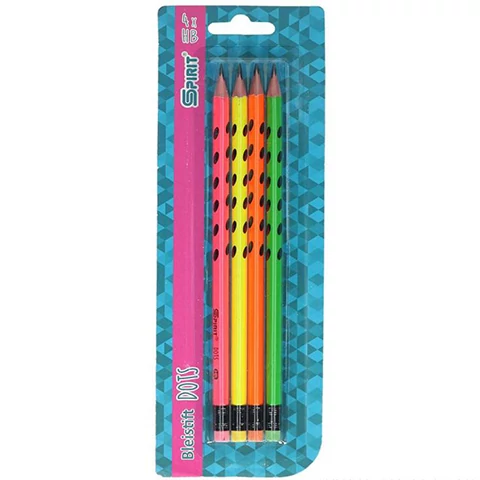 Spirit: Neon Dosts háromszögletű HB grafitceruza radírral 4db-os szett