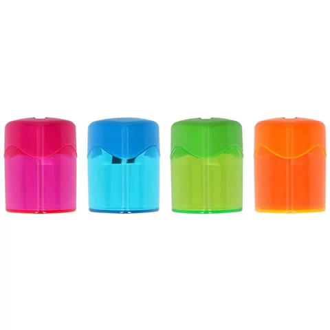 Egy igazán divatos színekben pompázó hegyezővel egészítheted ki gyermeked írószereit amellyel a hagyományos ceruzák mellett akár a Jumbo méretű színes ceruzákat és postairónokat is könnyedén kihegyezheted gyermeked számára, de az iskolai mindennapok során is megállja a helyét hiszen akár a tolltartóban, akár az iskolatáska kisebb zsebeiben is gond nélkül elfér. A hegyező egy zárt tartállyal rendelkezik amelynek köszönhetően elkerülhető a faragással keletkezett forgács szétszóródása és később könnyedén kiüríthető.