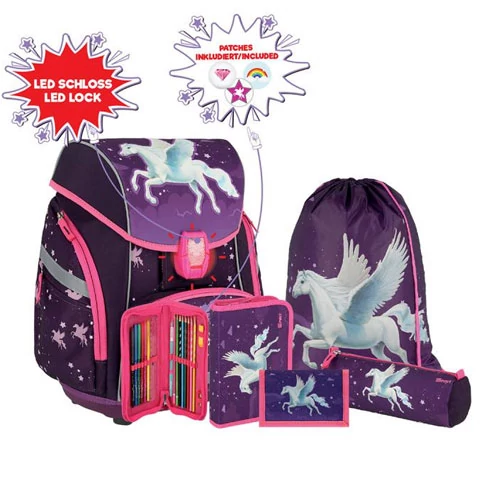 Spirit: Pegazus lila 5db-os iskolatáska szett kiegészítőkkel LED fénnyel
