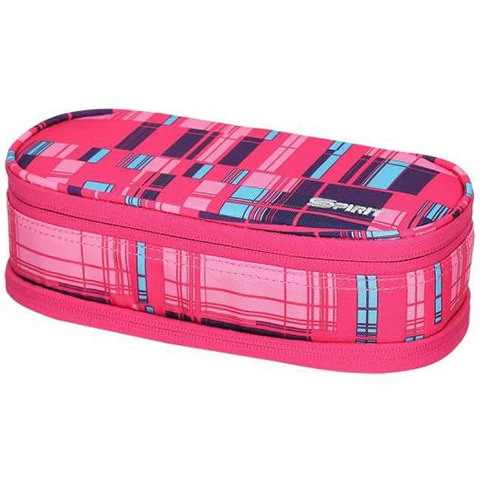 Spirit: Rózsaszín kockamintás ovális emeletes tolltartó 23x10cm