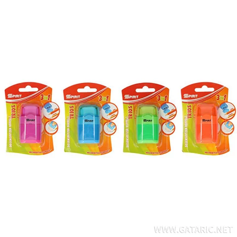 Spirit: Trios 3 az 1-ben 2 lyukú tartályos hegyező és radír többféle színben 1db-os csomag