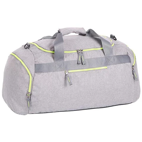 Spirit: Világos szürke sporttáska neonzöld cipzárral 55x31x41cm