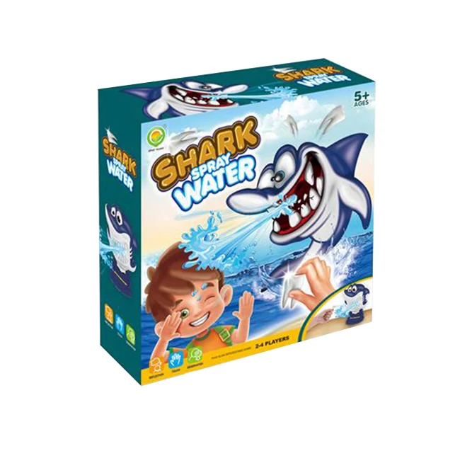 A Spriccelő cápa társasjáték lényege, hogy a kék színű cápa fogait kell a játékosoknak kihúzgálni úgy, hogy még véletlenül se spriccelje le őt vízzel, hiszen akkor kiesik a játékból. Az előkészületek roppant egyszerűek, helyezd be a vízzel töltött fecskendőt a megfelelő helyre, rakd be egyesével a gumiból készült fogakat a cápa szájába és már indulhat is a játék!