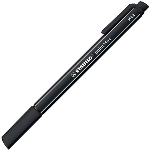 Rendkívül strapabíró, nylon heggyel rendelkezik ez a Stabilo pointMax rostirón, melynek 0,8mm vastag hegye finomságot és pontos megjelenést garantál, még vonalzó mellett húzva is. A fekete színű írószer kiváló minőségben készült, tulajdonságai ideálisak a mindennapi használathoz. Akár hivatalos levélhez vagy rajzoláshoz is tökéletes, így felnőttek és gyerekek is örömmel veszik majd kezükbe az újabb használat során.