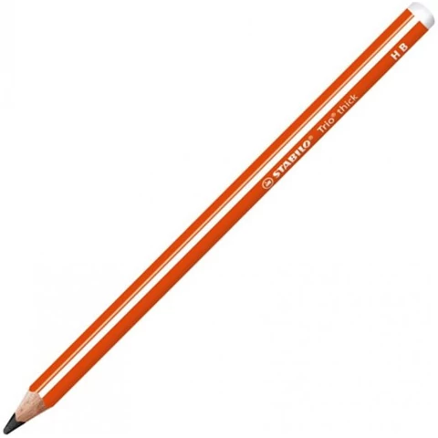 Háromszögletű kialakítása miatt rendkívül kényelmes és praktikus gyerekek számára ez a Stabilo Trio Thick ceruza, melynek modern külseje narancssárga színt kapott. A HB keménységű ceruza az írást még gyakorló diákok számára ideális, hiszen a megfelelő nyomóerőt is elsajátíthatják használat közben amit HB keménysége is elősegít. A könnyen faragható grafit ceruza hasznos eleme lesz a tolltartónak minden diák számára.