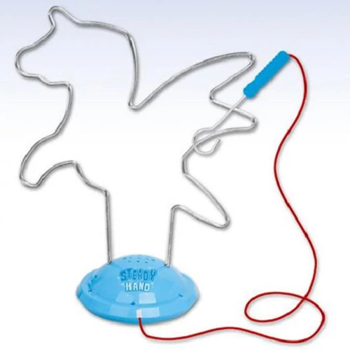 Ha úgy érzed, hogy rendkívül biztos kezed van, és soha egy pillanatra sem remeg meg, akkor tedd próbára magad ezzel a különleges pegazus ügyességi játékkal. A Steady Hand ügyességi játék szabályai meglehetősen egyszerűek, csak be kell tenni a talapzatba a két darab AAA ceruzaelemet és be kell kapcsolni. Ezután a kézi pálcával úgy kell végigkövetni a drótból kialakított formát, hogy a gyűrű egyszer se érjek a huzalhoz. Amint hibázunk, a játék azonnal fénnyel és hanggal jelzi. A játék remekül fejleszti a szem-kéz koordinációt, valamint a finom-motoros készségeket.