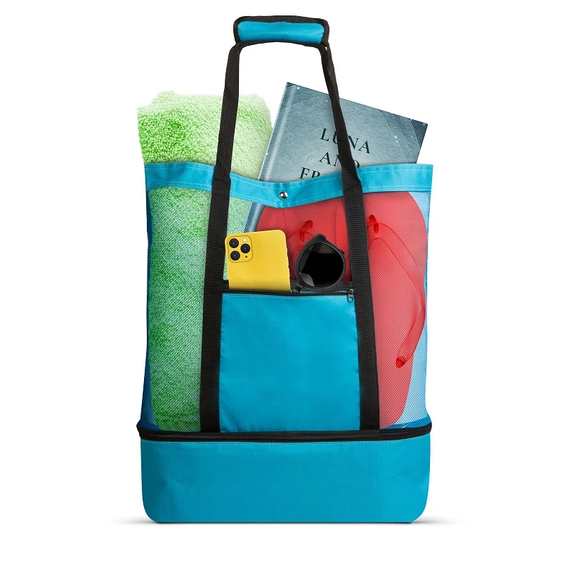 Praktikus kiegészítő lehet a meleg, nyári napoknak. Használhatja tengerparti kirándulások, túrák, nyaralások, strandolás vagy egy egyszerű hétköznapi bevásárlás alkalmával. A felső hálós rekesz hatalmas befogadóképességgel rendelkezik, így mindent magával vihet, ami egy fürdőzéshez szükséges. Az alsó, termo réteggel ellátott zseb alkalmas például italok, szendvicsek hűvösen tartására.