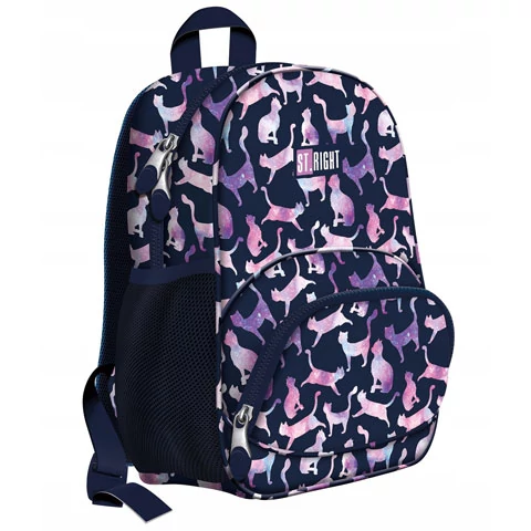 Válassz egy kicsi, de annál praktikusabb hátizsákot a kislányos számára, akinek garantáltan elnyeri a tetszését a különleges színvilág és a cicás minta. A St.Right mini hátizsák csupán hét literes kapacitással bír, azonban ez is elegendő lehet a suliban egy lazább napra, amikor nincs szükség túl sok tanszerre, hiszen néhány füzet és könyv elfér a fő rekeszben, az első zsebbe pedig kerülhetnek az apróságok, az oldalsó hálós zsebbe pedig a frissítővel feltöltött kulacs. A táska kis mérete kényelmes kialakítással és természetesen könnyű súllyal párosult.