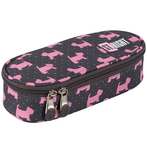Ez az ovális tolltartó egészen biztos, hogy minden kutya kedvelő kislány szívét megdobogtatja, hiszen a tolltartó sötét hátterét rózsaszín kutya minta teszi változatossá és egyben igazán csajossá. Ovális kialakításnak köszönhetően rengeteg írószer elfér benne, melyek közül a leggyakrabban használt darabokat akár a fedlapra is lehet rögzíteni, így mindig kéznél lesznek majd, amikor csak szükség van rájuk. A hálós zsebbe az apróságok kerülhetnek, hogy azokat ne a tolltartó aljából kelljen majd kitúrni.