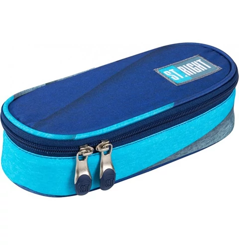 Ezen a kiváló minőségű, St.Right márkájú ovális tolltartón a kék szín különböző árnyalata található meg és a színek összhangja kiválóan harmonizálnak egymással így egy divatos iskolaszerrel egészítheted ki gyermeked felszerelését. A tolltartóban rengeteg írószer elférhet, 23cm-es hosszúságának köszönhetően akár egy körző, vonalzó is helyet kaphat a belsejében. A cipzár kihúzását követően a nagy belső tárolótérben egy elválasztó fül is megtalálható amely gumis rögzítésű pántokkal rendelkezik és a legtöbbet használt írószereknek adhat helyet.