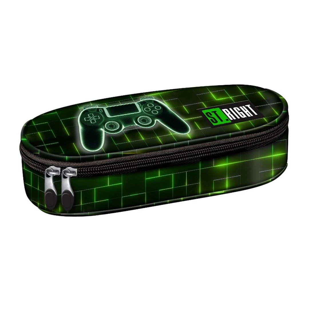 A Neon Pad ovális tolltartó (23x9,5x6 cm) tökéletes választás, ha gyermeked imádja a játékokat és a modern, vagány stílust! A tolltartó dizájnja egy futurisztikus gamer hangulatot idéz meg: fekete alapon ragyogó zöld neon fényben tündöklő kontrollergrafika és kockás háttérmintázat díszíti. Ez a menő minta garantáltan kiemeli a tolltartót az iskolai holmik közül, így a gyerekek büszkén vihetik magukkal a suliba.