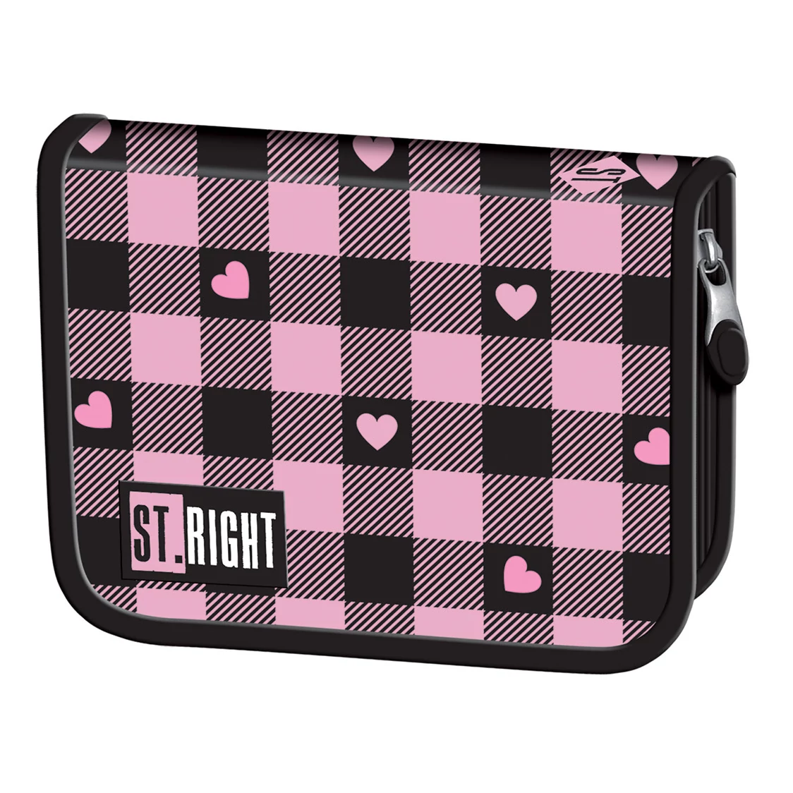 A St.Right rózsaszín-fekete szívecske mintás kihajtható tolltartó PC03 nemcsak praktikus iskolai kellék, hanem egyben stílusos kiegészítő is. A fekete és rózsaszín kockás minta modern és trendi, amit a bájos kis szívecskék tesznek igazán különlegessé. Ez a tolltartó remek választás, ha olyan darabot keresel, ami kifejezi gyermeked egyéniségét, és vidámságot csempész az iskolai mindennapokba.
