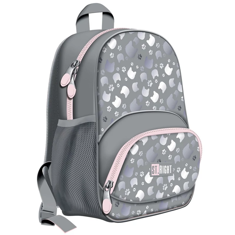 Indítsd útjára gyermeked iskolába a St.Right Silver Cats BP-70 iskolatáskával, amely nem csupán egy egyszerű tárgy, hanem egy varázslatos kiegészítő az iskolai évekhez! Ez a táskamodell szürke színű, halvány rózsaszín szegélyekkel, és cica fejes és mancsos mintával van díszítve, ami garantáltan elvarázsolja a gyerekeket.