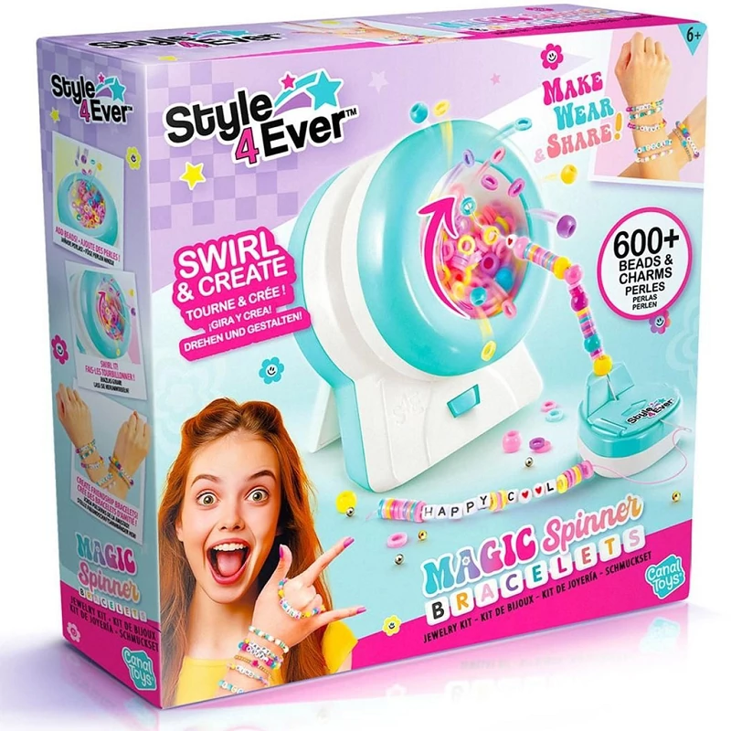 Készen álltok egy igazán különleges kreatív élményre? A Style 4 Ever Pörgő barátságkarkötő-készítő szett varázslatos módon hozza el a karkötőkészítés örömét a gyerekek számára! Ez a szett nemcsak tele van több mint 600 gyönggyel és charm-mal, hanem egy egyedi, pörgő gyöngyválogató gépet is tartalmaz, amivel szinte magától felfűződnek a gyöngyök a zsinórra!