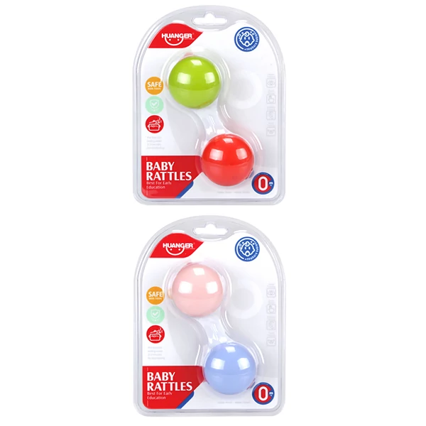 Ez a bébi csörgő két változatban érhető el, hogy még színesebbé tegye a kisbabák játékélményét. A csörgő kialakítása kifejezetten kényelmes fogást biztosít a legkisebbeknek is. Két gömböt összekötő konstrukcióval rendelkezik, így könnyen kézbe vehető és biztonságosan kezelhető. A gömbök belsejében apró golyók találhatók, amelyek kellemes csörgő hangot keltenek, amikor a csörgőt megrázzák.