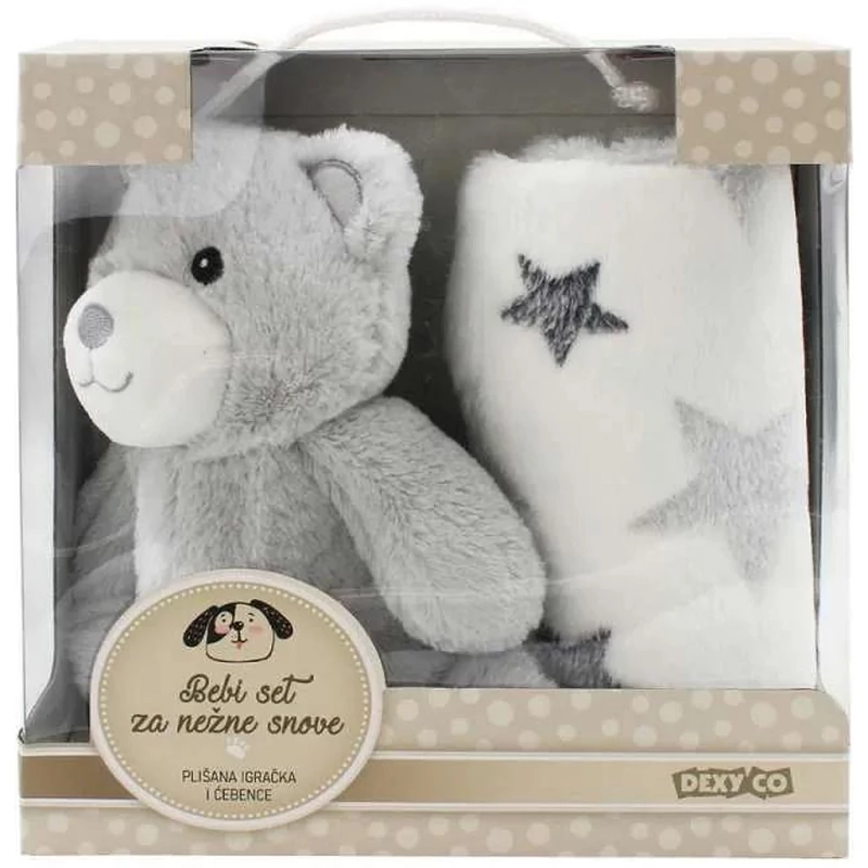- 2 részes szett: szürke plüss maci és puha csillagmintás takaró