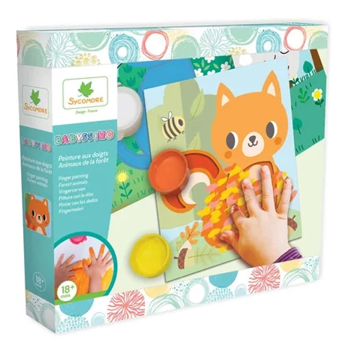 A kreatív gyerekek örömmel ismerkednek meg a festészettel, de nem szabad elfeledkezni a kezdetekről sem, hiszen az ecsetek sem önmaguktól születtek, első vonásokat ujjal tették meg egykor az emberek. Ez pedig egy remek kiindulópont a legkisebbeknek, hogy megismerkedjenek a festéssel. Sycomore Artissimo Ujjfestés legkisebbeknek, már 18 hónapos kortól lehetőséget ad, hogy beszálljanak a festegetés mókájába. A doboz 5 izgalmas állatkás képet rejt, akik nagyon várják, hogy kiszínezzék őket. A csomag öt festéket rejt, amit a gyerkőcök az állatokhoz párosíthatnak.