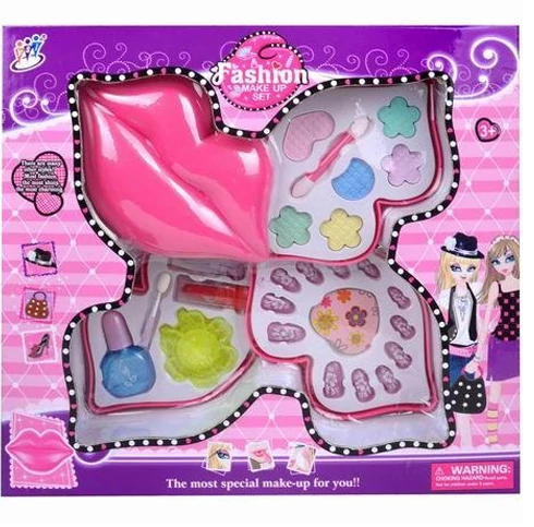 Ez a rózsaszín, száj formájú tárolóban elhelyezett smink készlet egészen biztos, hogy hatalmas sikert arat a kislányok körében, akik örömmel csinosítják ki magukat a benne található szemfestékkel és szájfényekkel.