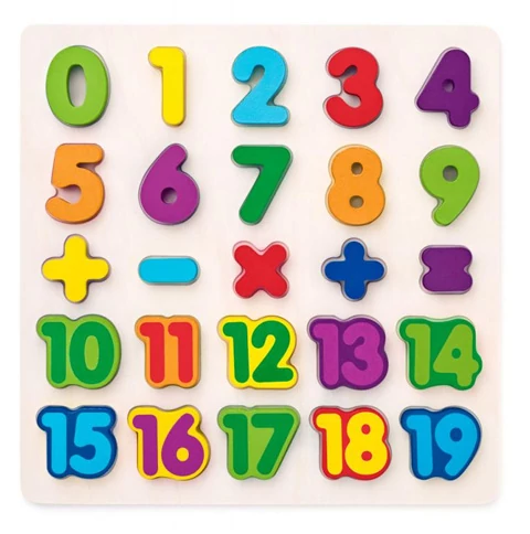 Már a legkisebb gyerekek is elkezdhetnek ismerkedni a számokkal ennek a szuper puzzlenak a segítségével, hiszen a fa puzzle egyszerre remek játék és lehetőség a számok megtanulására. A fa lap nullától kilencig tartalmaz számokat amelyeknek a különleges színe is segít felkelteni a gyerekek érdeklődését. A fa játékai aprólékos kidolgozásuknak és festésüknek valamint a kiváló minőségüknek köszönhetően érték- és időt állók, amelyek a gyerekek számára örömteli és szórakoztató játékélményt kínál.