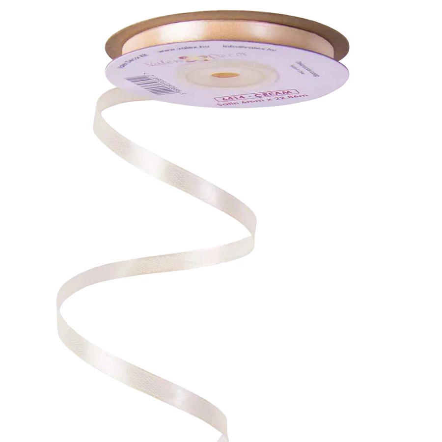 Szatén szalag krém színben 6mmx22,86m 6414