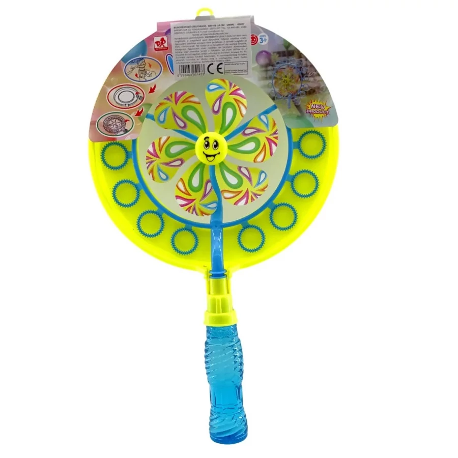 Fedezd fel a buborékok varázslatos világát ezzel a szélforgós buborékfújó pálcával, amely garantáltan szórakoztatja a gyerekeket órákon át! A csomagolás tartalmaz egy üveg kiváló minőségű buborékfújó folyadékot és egy praktikus tálcát, amelybe beleönthetjük a folyadékot a könnyű használat érdekében. A szélforgós pálca különleges kialakításának köszönhetően rengeteg buborékfújó lyuk található rajta, így minden egyes mozdulattal több tucat apró buborékot bocsát a levegőbe. Csak mártsuk bele a pálcát a folyadékba és indulhat a varázslat!