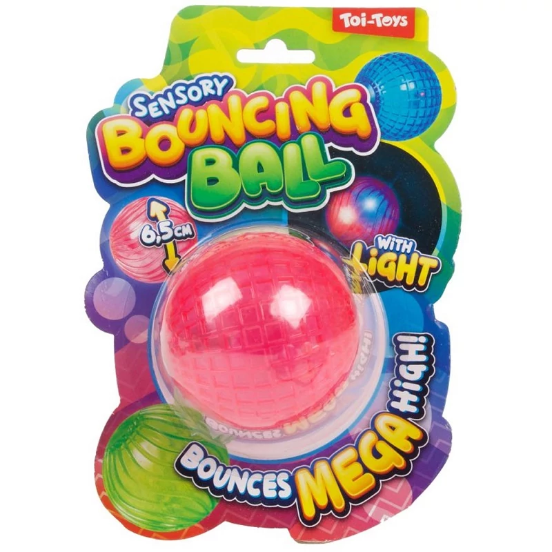 Dobd, pattintsd, világíts – a Toi-Toys Sensory Bouncing Ball pattogó labda garantáltan feldobja a játékidőt! Ez a 6,5 cm-es átmérőjű, színes és átlátszó gumilabda nemcsak elképesztően magasra pattan, hanem ütés hatására világítani is kezd, így még izgalmasabbá és látványosabbá teszi a játékot.