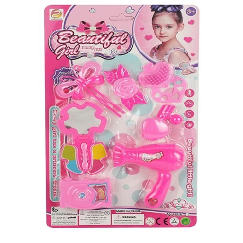 Ez a nagyszerűen felhasználható szépség szett olyan eszközöket tartalmaz, amelyek egyetlen mesterfodrász felszereléséből sem hiányozhatnak, mint például a hajszárító, fésű, tükör és a további haj dekorációhoz szükséges használati tárgyak. A szett egy műanyag fényképezőgépet is tartalmaz amely kapóra jön, ha megörökítené a kedvenc babájának frizuráját. A szépség szett kiválóan alkalmas a játékbabák frizurájának dekorálására és akár gyermeked a saját hajába is beillesztheti a csatokat.