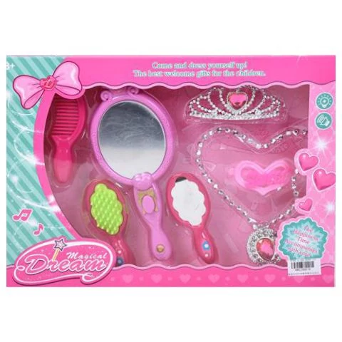 A szettet a gyerekek maguk is használhatják, vagy tetszés szerint a babáikra is adhatják. A tükör zenél gombnyomásra.