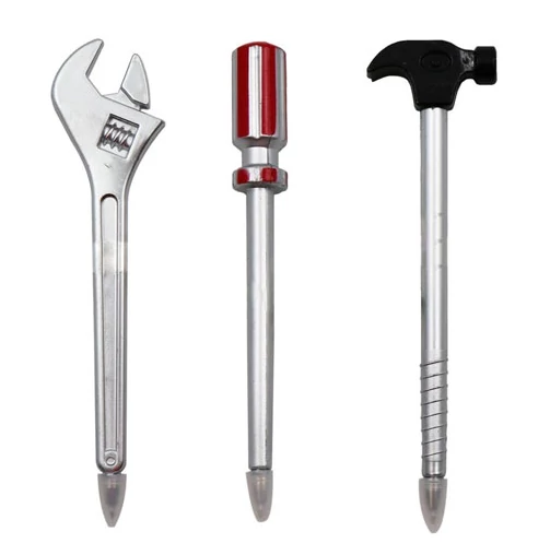 Ajándékba egy ügyes szakembernek, vagy otthon mindig barkácsoló embernek vagy akár gyerekek számára is kiváló lehet ez a toll, mely háromféle változatban érhető el. Ezek egy vízpumpafogó, csavarhúzó és egy kalapács, melyek közül kiválaszthatod melyiket szeretnéd gyermeked számára. A tollak kék tintával fognak, és egy-egy kupak is tartozik hozzájuk hogy ne tudjanak kiszáradni. Részletes kialakítást kaptak, strapabíró anyagból, melyeket így sokáig lehet majd használni.