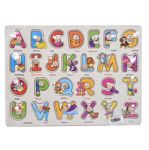 Gyermekedet szeretnéd megismertetni a betűkkel? Ez a játék kiváló választás lehet ehhez, hiszen egy formaválogatós puzzle formájában tanulhatja meg az egyes betűket. A tábla és a játék egész fa anyagból készült, amin a nagybetűkkel ismerkedhet meg, különböző angol szavak és a hozzájuk tartozó képekkel. A szett az angol ABC betűit mutatja be, és a rajtuk lévő kis fogó segítségével könnyedén ki lehet emelni és a helyére tenni az egyes betűket. Szerezd be és keresd más változatban is kínálatunkban.