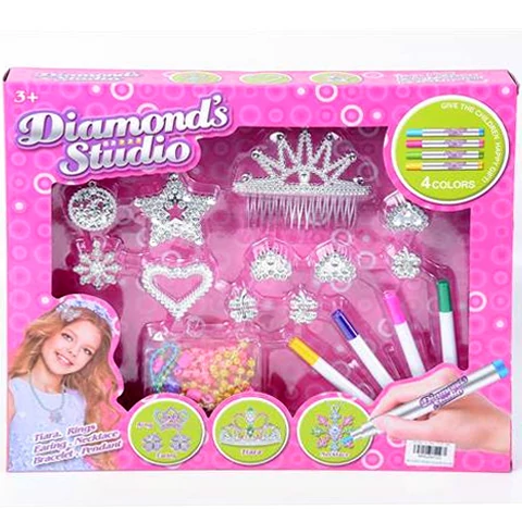 A különféle ékkövek és ékszerek mindig nélkülözhetetlen részét képzik a hercegnők öltözetét, és ebben a nagyszerű készletben nagyon szuper kiegészítőket lehet találni. A szuper készlet azonban nem csak csodálatos ékszereket tartalmaz, hanem négy különböző színű filcet is, amivel a gyerekek könnyedén kiszínezhetik az ékköveket. A kék, zöld, sárga és rózsaszín filcekkel a gyerekek valóban egyedi és magukhoz illő ékszereket készíthetnek, amivel mindenkit le fognak nyűgözni.