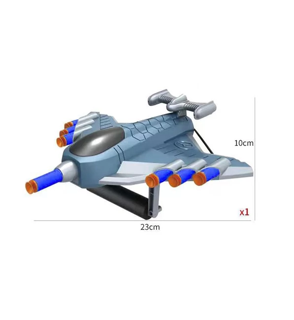 A szivacslövő fegyverek között ma már minden megtalálható az egészen apró egylövetű pisztolyoktól a hatalmas hevedertáras sorozatvetőkig, de olyat mint ez, eddig biztos, hogy sehol nem találtál. Ez a vagány repülőgép természetesen szivacslövőfegyverként működik. A középső lövedéket lehet vele kilőni, míg a szárnypilonokon 3-3 lövedéknek van hely. A készlet ráadásul tíz kisebb, tapadókorongos szivacslövedéket és és három célhengert is tartalmaz, így bőven nyílik lehetőség a gyakorlásra!