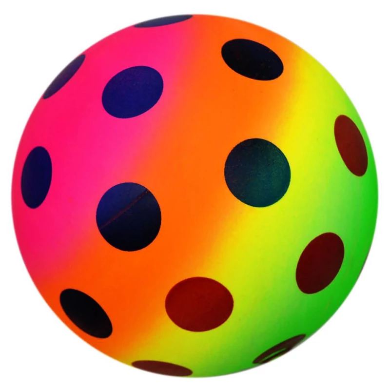 Ez a pöttyös, neon szivárványszínű gumilabda intenzív színeivel és erős kontrasztjaival ámulatba ejt mindenkit. Puha gumi anyaga és pehelykönnyűsége élvezetes labdázást biztosít a legkisebbeknek is.