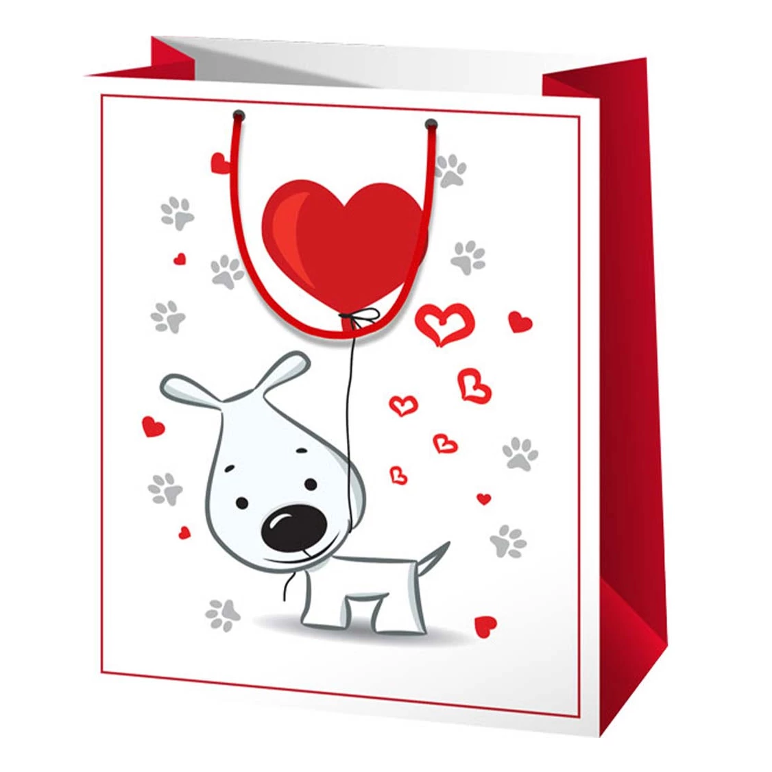 Szívecske lufis kutya mintás közepes ajándéktáska 18x10x23cm
