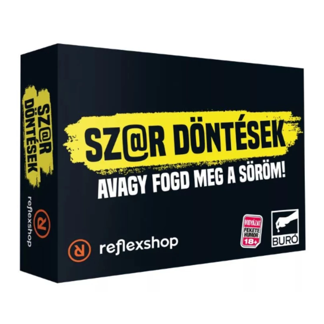 A Sz@r döntések társasjáték egy pimasz, felnőtteknek szóló partijáték fekete humorral, ahol minden körben két borzalmas opció közül kell választanod… és egyik sem lesz jó ötlet. A játék lényege egyszerű, mégis halálosan vicces: felolvasol egy dilemmát, a többiek szavaznak, te pedig próbálod kitalálni, melyik „sz@r döntést” választja majd a többség. Ha eltalálod, pontot kapsz – ha nem, legalább kapsz egy újabb sztorit arról, mennyire nem ismered a barátaidat.