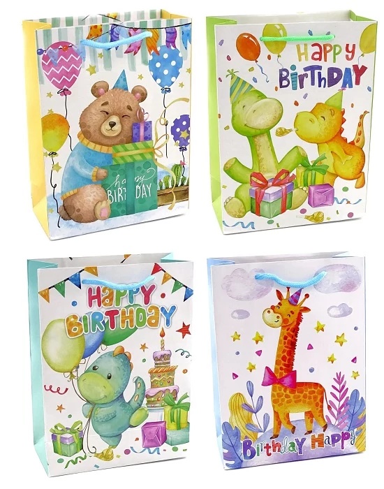 Születésnapos állatmintás ajándéktasak többféle változatban.