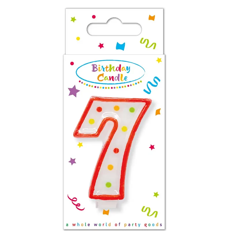 Varázsold különlegessé gyermeked hetedik születésnapját ezzel a színes, pöttyös 7-es számú szülinapi gyertyával! A vidám, fehér alapú gyertyát színes pöttyök és piros szegély díszíti, amely remekül mutat bármilyen tortán – legyen az házi készítésű vagy cukrászdából rendelt. A gyertya nemcsak dekorációként szuper, de igazi ünnepi hangulatot is varázsol a gyertyafújás pillanatához.