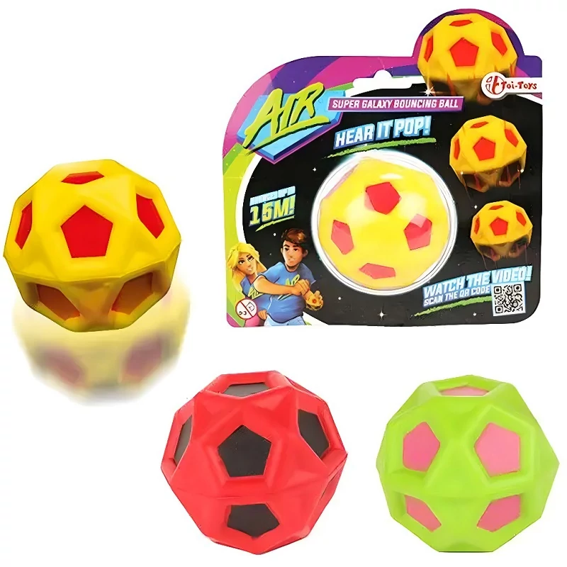 Készülj fel egy szuper pattogós kalandra a Toi-Toys Air Super Galaxy labdával! Ez a különleges kialakítású, színes pattogó labda nemcsak elképesztően magasra – akár 15 méterre is – képes felpattanni, hanem minden ütésnél egy vicces „pop” hangot is ad, amitől még szórakoztatóbb lesz a játék. Ideális választás a mozgásos játékokhoz és kültéri elfoglaltsághoz.
