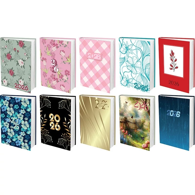 10 minta. 89x126 mm, 128 oldalas terjedelem. Beltartalom: adatlap, jegyzetek, összesítő naptár, éves tervező, telefonszámok. Naptárrész: 7 nap/oldalpár, magyar névnapok, holdfázisok, magyar/angol/német, magyar ünnepnapok, 6.00-21.00 órás beosztás. Ragasztott, cérnafűzött, 70 g-os ofszet belívek. Kemény tábla.