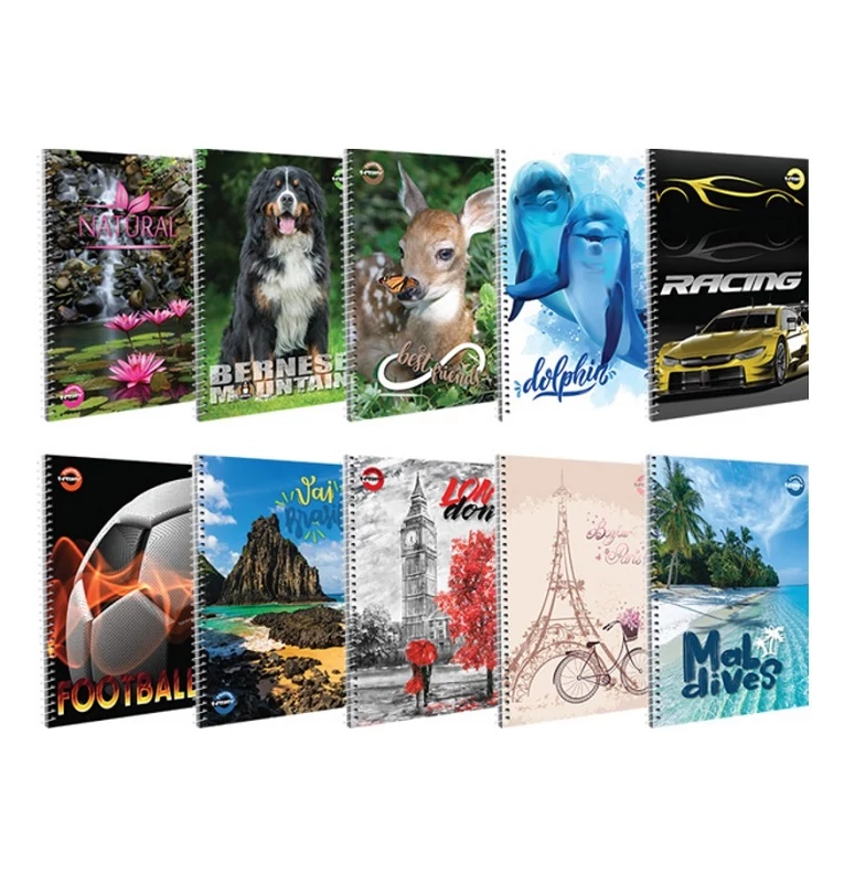 A/5-ös méretű, sima spirálfüzet, 10 különböző mintával. Dupla spirálozás, mely egyrészről stabilitást ad a füzetnek, másrészről hosszú élettartamot biztosít, mert a zárt spirálnak köszönhetően az nem sérül. 275 g-os borítója fényes fóliával bevont, ami időtállóvá teszi. Hófehér ofszet belívei a magyar szabványnak megfelelő vonalazásúak.