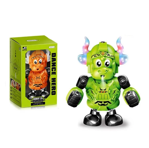 Láttál már bikát táncolni? Most ezzel az élménnyel lepheted meg gyermekedet ezzel a robottal, mely egy álló bikát jelenít meg, zöld vagy narancssárga színben. A bika világító füleket és szarvat kapott, valamint a fején keresztül vizet lehet tölteni bele, ezután bekapcsolva pedig füstként száll ki a szájából a vízpára. A bika zenél és táncol is, amivel biztosan jókedvre deríti majd a kicsiket. 23 cm-es méretével bárhova magával viheti majd gyermeked így bárhol szórakozhatnak majd együtt.