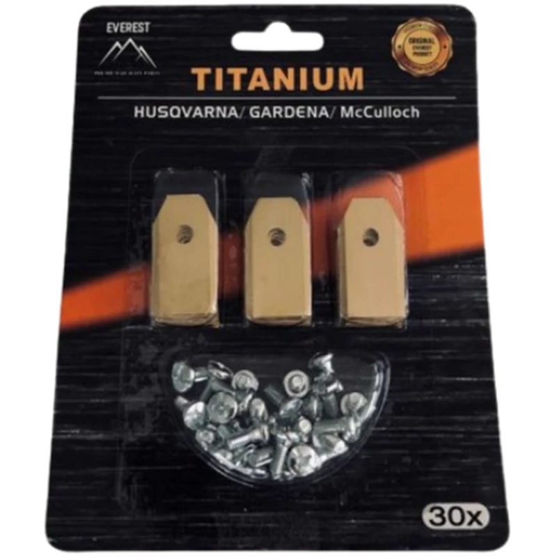 30 darab, 35 mm-es tartalék kés Husqvarna és Gardena robotfűnyírókhoz. A titán bevonat a hagyományos acélhoz képest jobb kopásállóságot biztosít, de az élettartam a gyep és a használati körülmények függvénye. Méretben és rögzítésben az eredeti késeknek megfelelő, így kompatibilis a megadott típusokkal. Elhasználódott kések cseréjére, rendszeres karbantartáshoz ajánlott.