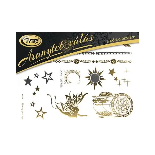 Taytoo arany tetoválás különböző motívumokkal