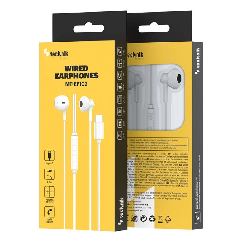 Technik fülhallgató C-type+Controller 1,2m fehér MT-EP102