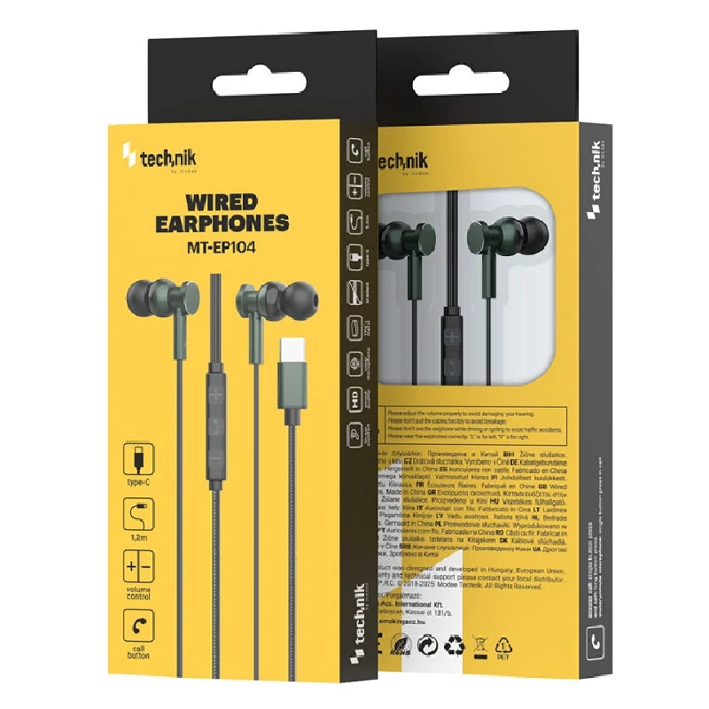 Technik Fülhallgató Plastic EP104 Type-C +controller 1,2m Olivazöld