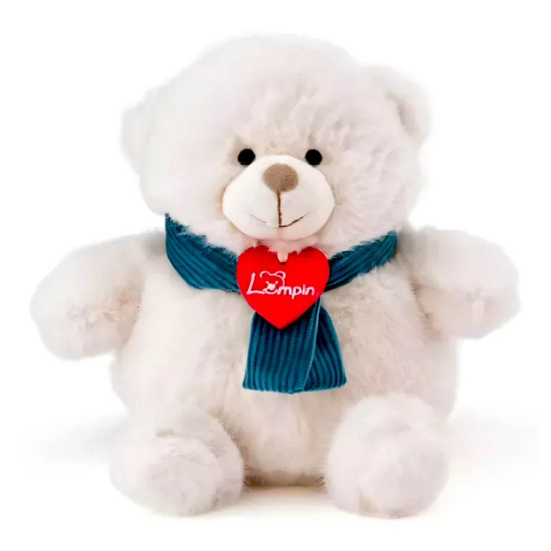 A Teddy fehér plüss maci, kék sállal, egy igazán bájos és puha kis barát, akit minden gyermek szívesen ölelgetne. Ez a 18 cm magas, hófehér bundájú maci kedves megjelenésével és mosolygós arcával könnyen a gyerekek kedvencévé válik. A maci nyakában lévő kék sál és piros szív alakú címke a Lumpin logóval egyedi karaktert ad neki, így nemcsak a kicsik, hanem a gyűjtők számára is vonzó lehet.
