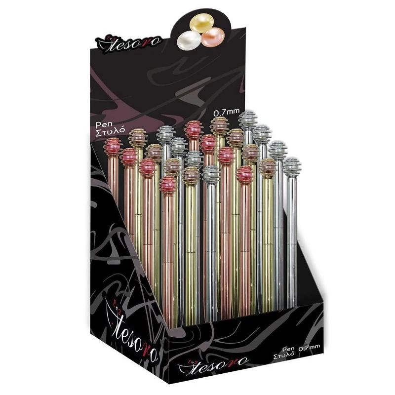 Fedezd fel a Tesoro gyártó elegáns fém tollkollekcióját, amely igazán kifinomult írásélményt nyújt. Ezek a tollak, amelyek gyöngyökkel díszítve érkeznek, tökéletes választás mindazok számára, akik a luxus és stílus pártján állnak. A fényes fémtest nemcsak tartósságot garantál, hanem eleganciát is kölcsönöz, míg a gyöngyök szemet gyönyörködtető részletességet adnak hozzá. A tollak 0.7 mm-es írásvastagsága ideális mindennapi használatra, legyen szó munkáról, iskoláról vagy személyes naplózásról. A különböző színek, mint arany, ezüst és rózsaszín, lehetővé teszik, hogy mindenki megtalálja a saját ízlésének megfelelőt. Ezek a tollak nemcsak funkcionalitásukban, hanem megjelenésükben is kiemelkednek, és tökéletes ajándékok lehetnek üzleti partnereknek, barátoknak vagy családtagoknak.