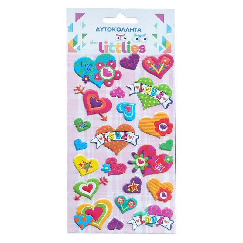 The Littlies: Ragyogó szív mintás 3D pufi matrica szett 10x22cm-es íven