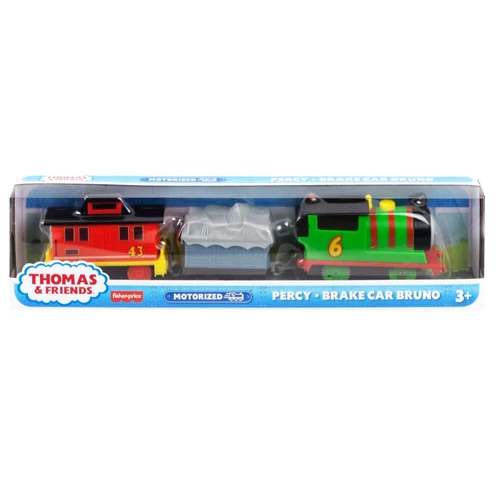 Az ifjú masiniszták rengeteg szállítási mókát hozhatnak létre ezzel a Thomas és barátai mesesorozatból ismert Percy és Brake Car Bruno járműkészlettel. A gyerekek megnyomhatják az elemmel működő mozdony tetején lévő gombot, hogy Percy száguldva szállítsa a rakományt, Brake Car Brunóval együtt. Az óvodáskorú vonatbarátok ezeket a járműveket bármelyik Thomas & Friends pályán végigzúghatják, kivéve a fából készülteket, így végtelen vasúti szórakozásban lehet részük.